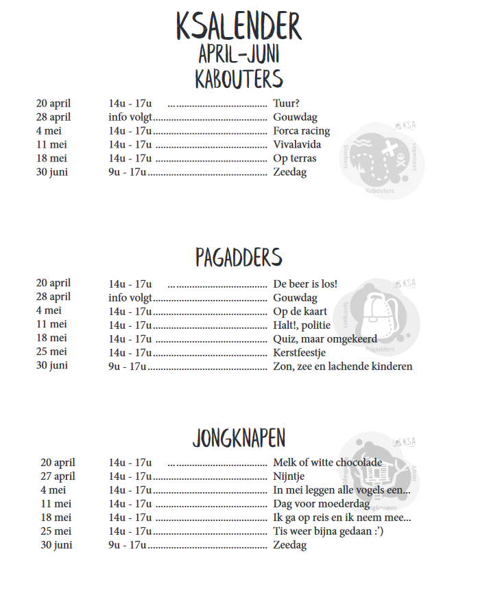 Elk lid zal zijn droedel en bijhorende kalender in de bus vinden of ontvangen op een van de activiteiten. Heb je nog geen droedel gekregen, download dan hieronder de nieuwste droedel!